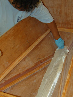 The fabric we use for reinforcing the keel interior is a biaxial double bias fiberglass that lends great strength to critical joints such as this.